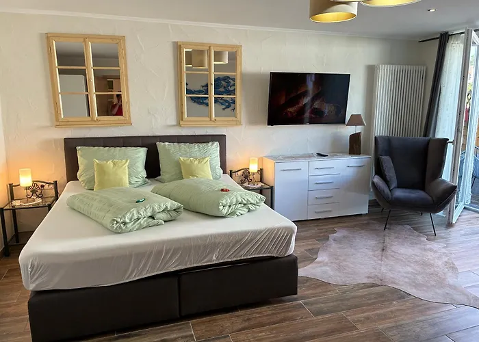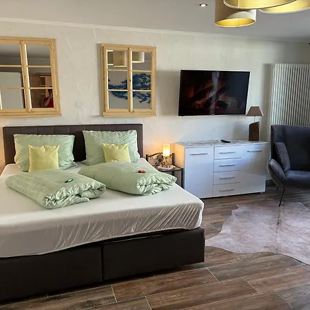 Obiekt noclegowy zapewnia pełnowymiarową kuchnię wyposażoną w kuchenkę mikrofalową, czajnik elektryczny i lodówkę. Obiekt znajduje się 75 km od lotniska Frankfurt-Hahn.